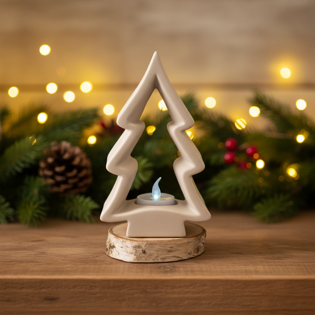 Com espaço para uma vela tealight, cria uma iluminação suave e acolhedora — perfeita para mesas, aparadores ou pequenos recantos de Natal.
