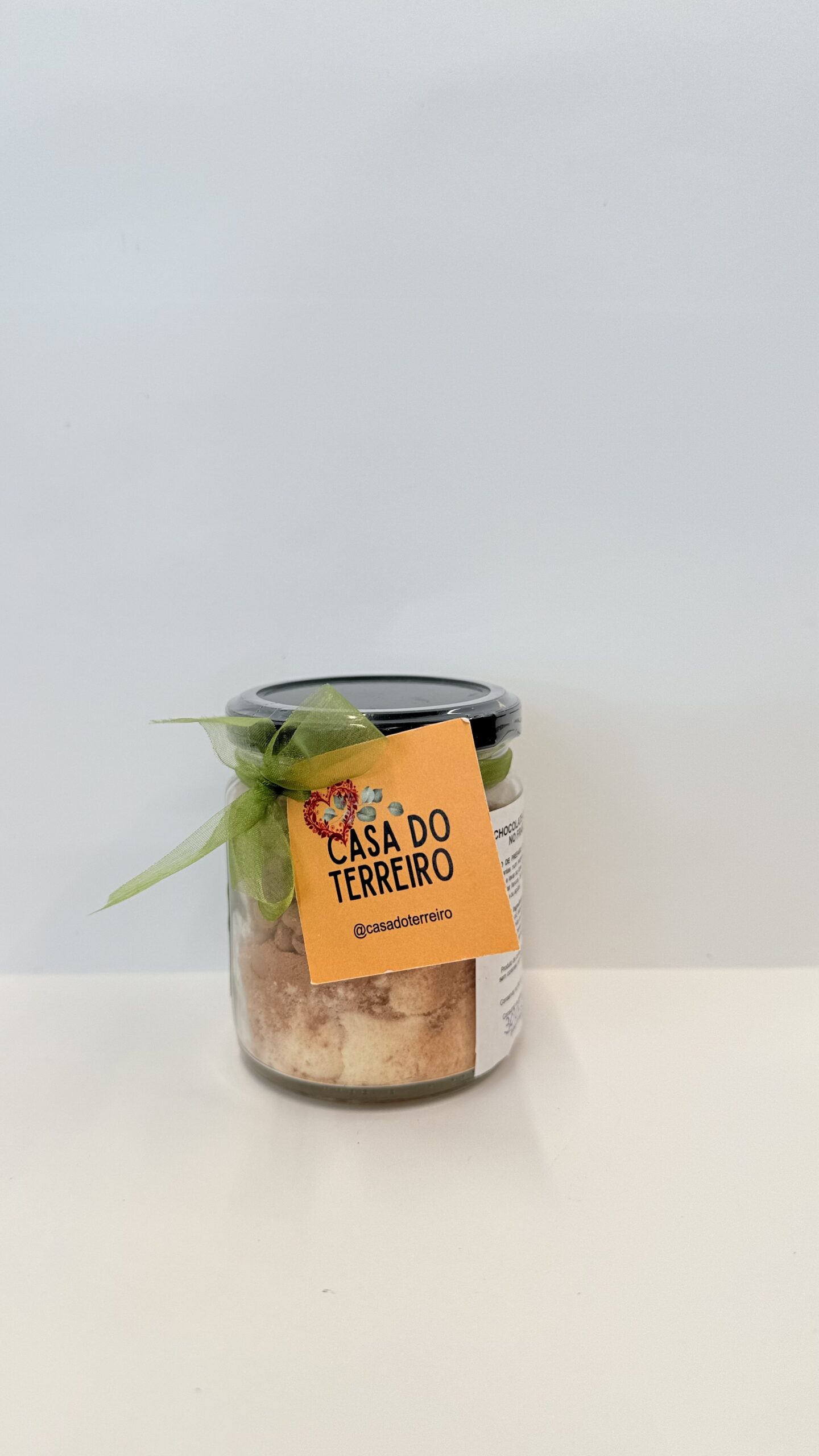Leite em pó, açúcar amarelo, amido de milho, canela, gengibre, pimenta e pepitas de chocolate negro.