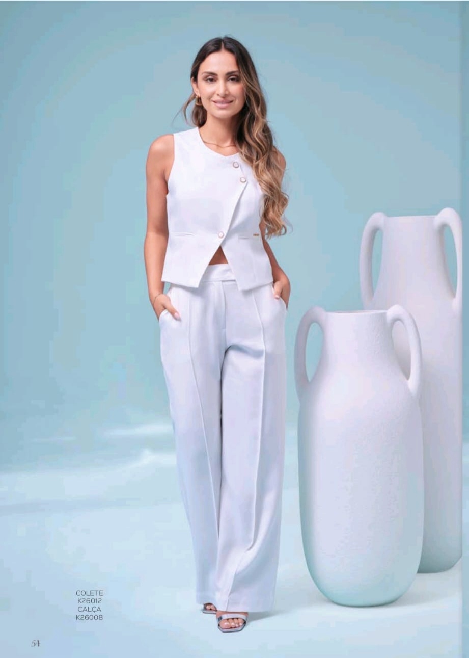 Conjunto alinhado senhora, colete e pantalona
