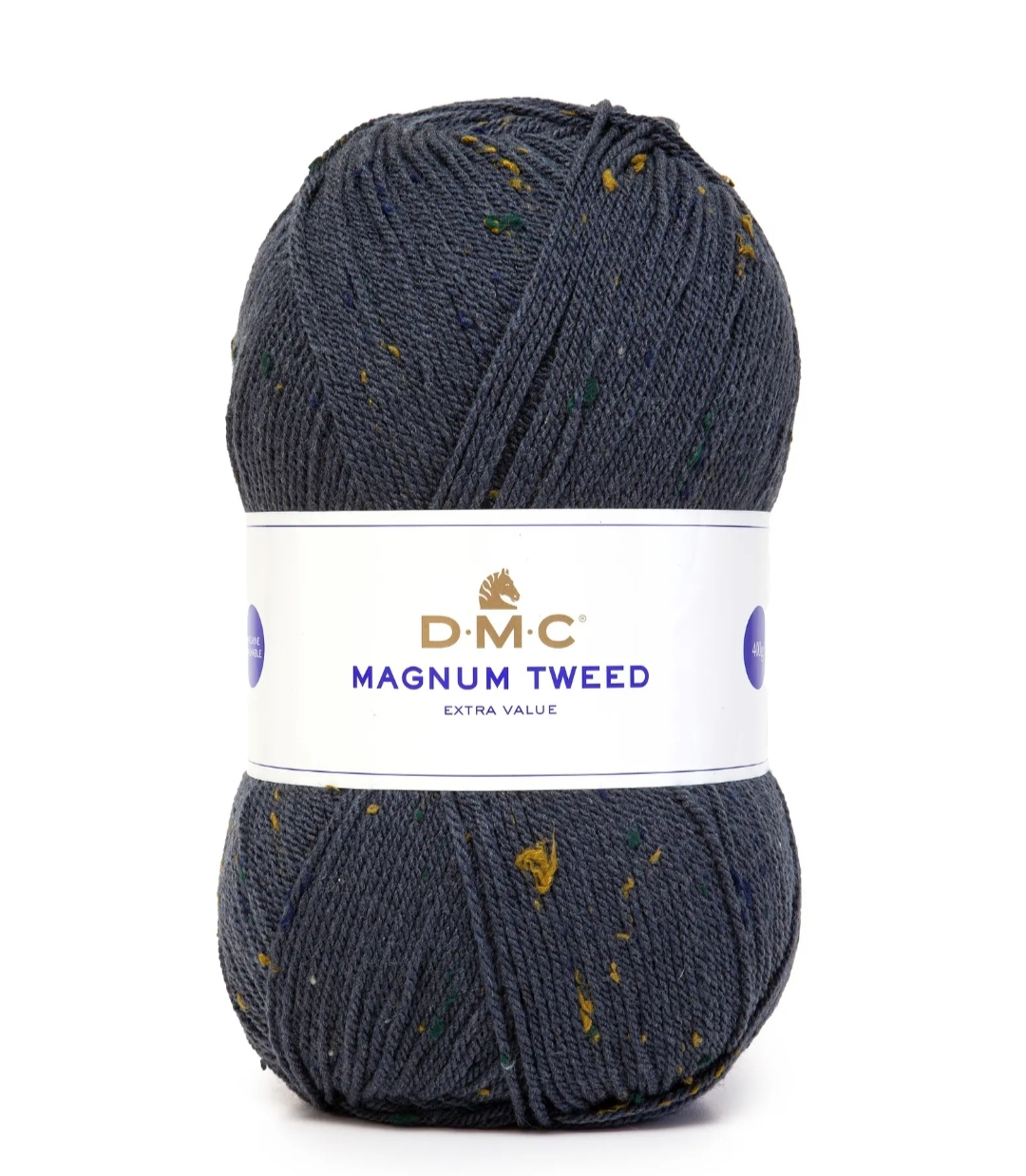 Lã está disponível em esplêndidos novelos de 400g e numa fabulosa gama de tonalidades. É uma mistura de lã e acrílico que pode ser lavada à máquina. Magnum Tweed DMC é uma mistura de acrílico, lã e viscose que acrescenta textura com kemps subtis e fibras coloridas que percorrem o fio.