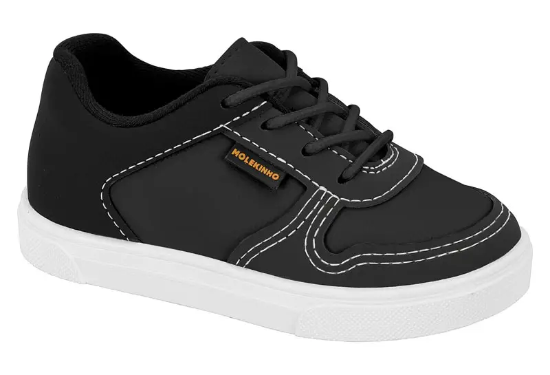 Cor preta e rasto branco, com atacadores. Material sintético e palmilha confortável.