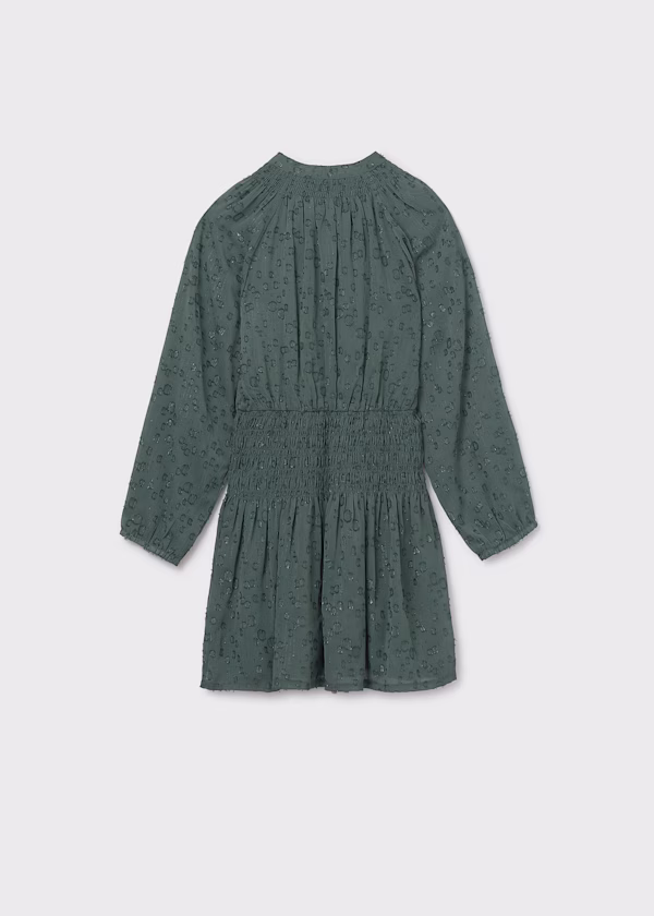 Modelo com gola mao do mesmo tom. Tecido de gaze leve e fluido. Este modelo leva detalhes de ninho de abelha.